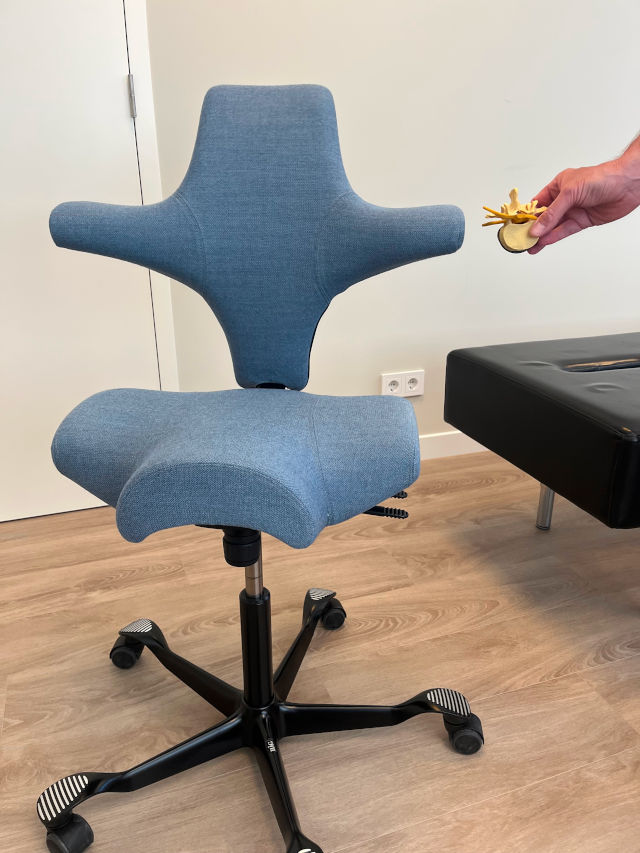 Ronald: "Wanneer de rug niet goed staat, niet beweegt of zijn beschermfunctie niet heeft dan kan het zenuwstelsel niet vrij functioneren. Wat de Capisco maakt tot een goede stoel is de actieve zithouding die mogelijk wordt gemaakt. Ter vergelijk, wanneer het zitvlak en de rugsteun niet goed afgestemd zijn ten opzichte van elkaar dan kan er druk op de onderrug ontstaan. De vrijheid van bewegen en ruimte voor zenuwbanen zal minder worden met overprikkeling en zitongemak tot gevolg. Een goede instelling van het zitvlak biedt immers het fundament waar ons bekken en rug zich wel bij voelen. Instelling van het rugkussen zorgt daarbij voor het behoud van de natuurlijke kromming van de rug."