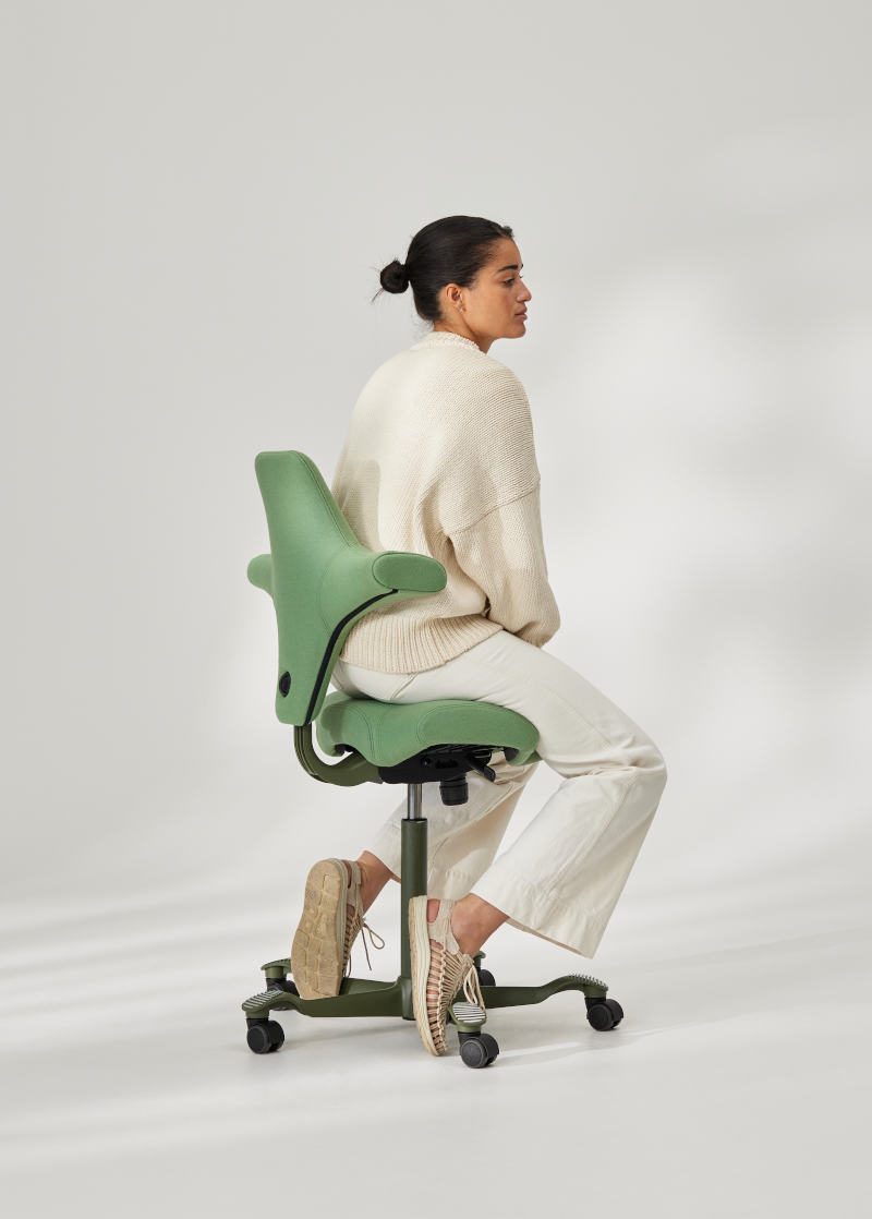 De beste zithouding is de volgende. Dé visie waarvanuit de Capisco is ontworpen. Door je zithouding veel en vaak te veranderen, zorg je ervoor dat je gezond zit en dat je lichaam nooit de kans krijgt om ongemak te ervaren of om klachten te ontwikkelen. Dynamisch en actief zitten dus. Met de Capisco lukt dat!